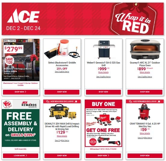 Check out our current flyer Check out our current flyer for the month of November for great deals on a wide variety of top brand products from John's Ace Hardware. From heaters and fall lawn care to tools, grills, and seasonal décor, we’ve got everything you need to take on your autumn projects. And as always, you can count on our expert staff to answer all of your questions.