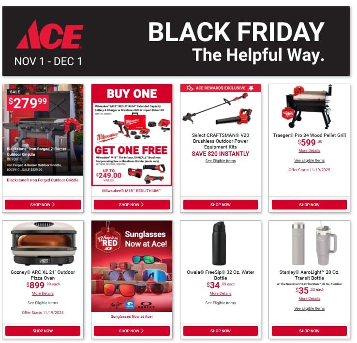 Check out our current flyer Check out our current flyer for the month of October for great deals on a wide variety of top brand products from John's Ace Hardware. From heaters and fall lawn care to tools, grills, and seasonal décor, we’ve got everything you need to take on your autumn projects. And as always, you can count on our expert staff to answer all of your questions.